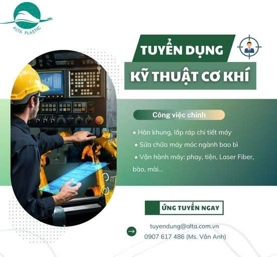 Team Alta Plastic đang tìm thêm Kỹ thuật Cơ khí gia nhập ngay!