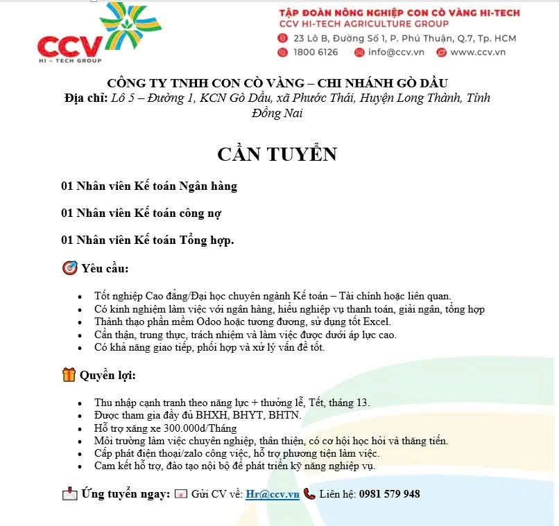- Điện thoại: 028 73002118 (Hotline) hoặc BP. Nhân sự: 08 1656 3007 (Bích Tuyền)