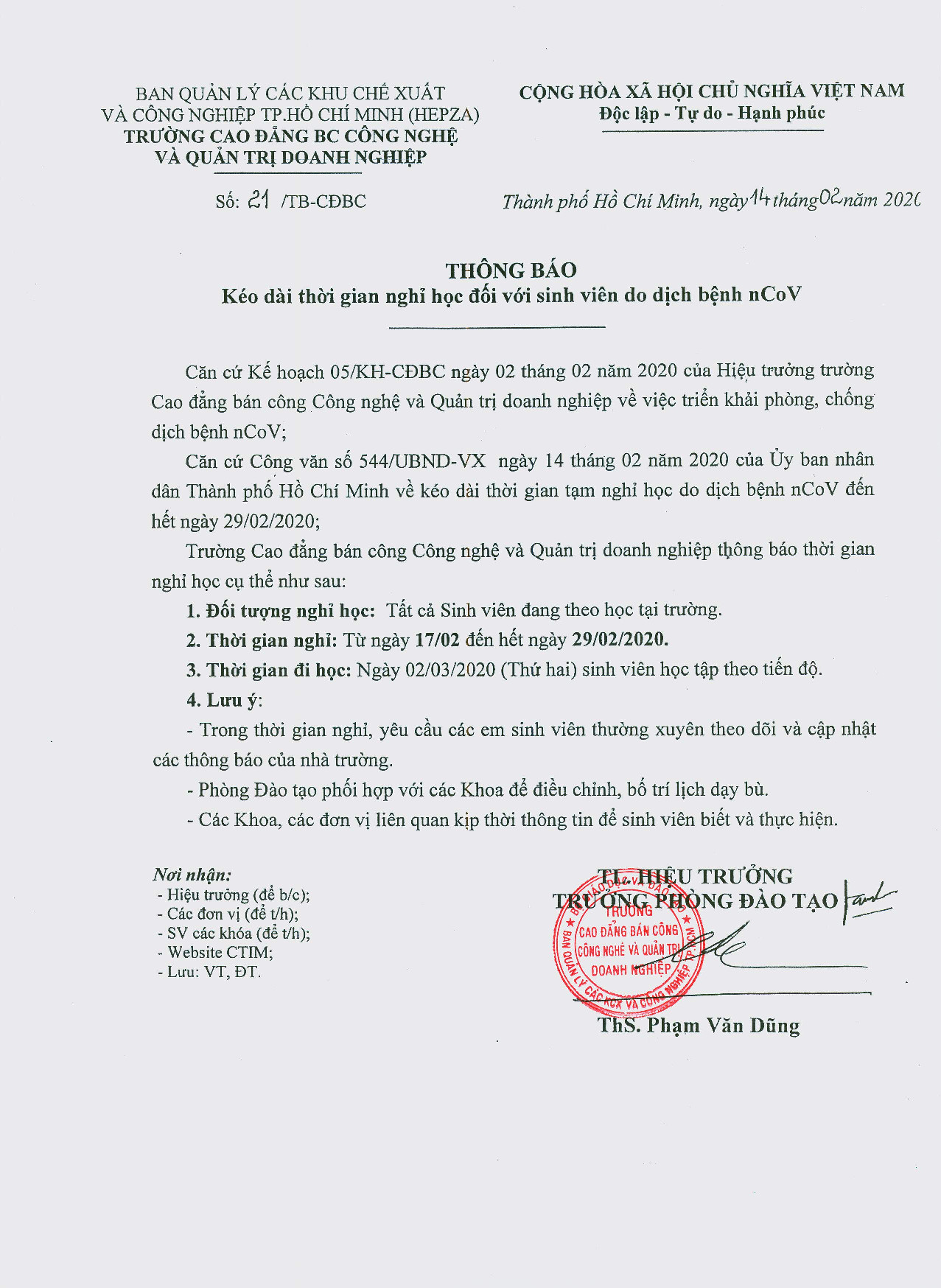 Phòng Công tác sinh viên và Quan hệ doanh nghiệp: 028 3638 5026 - 028 3638 5027 (phím 3)